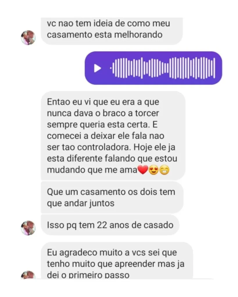 Você já tentou sozinha, mas percebeu que afastou seu marido ainda mais. Além disso sente que: